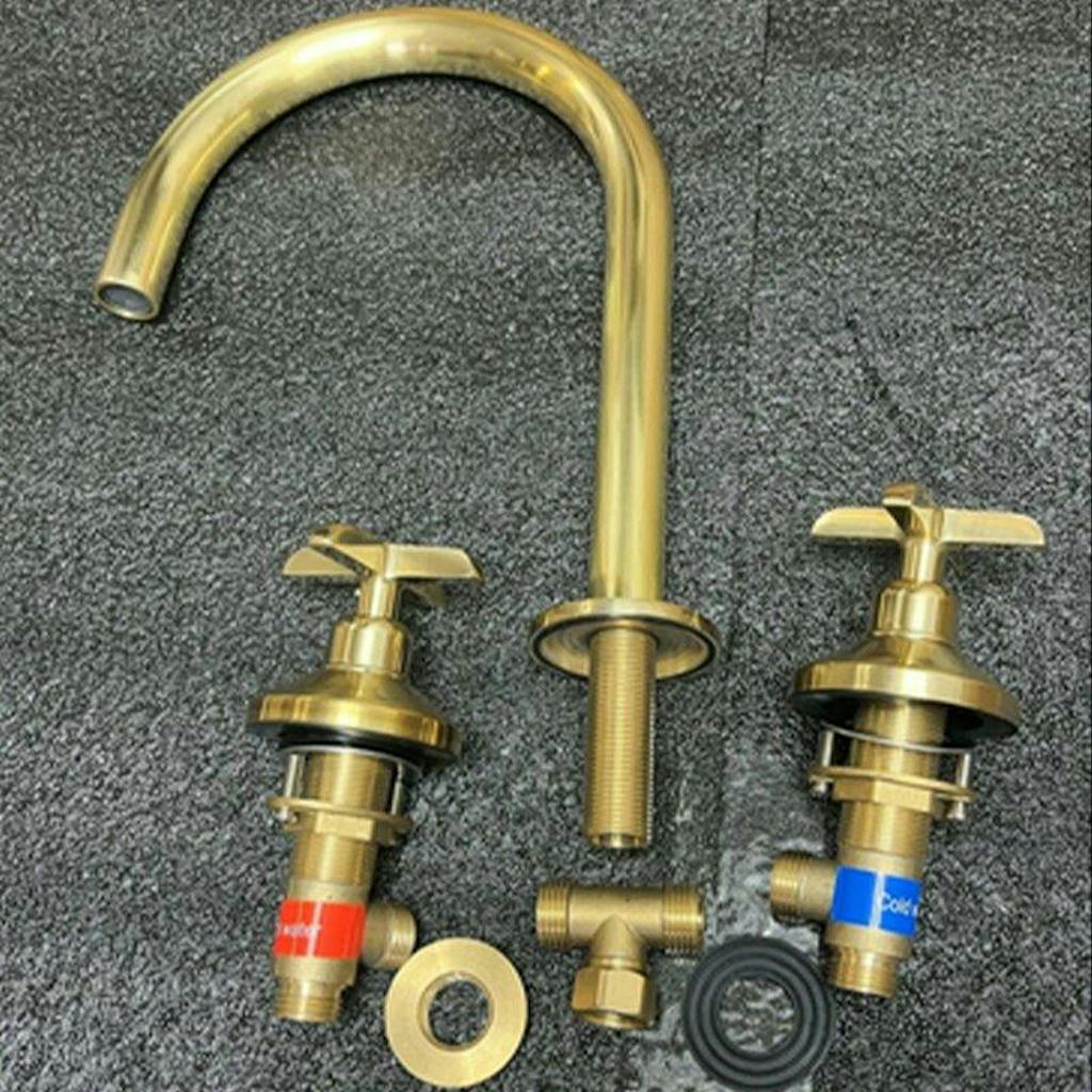 Unlacquered Brass Sink Faucet – Widespread Three-Hole Sink Fixture